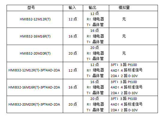 附:7寸HMIB32系列触摸屏PLC一体机选型表