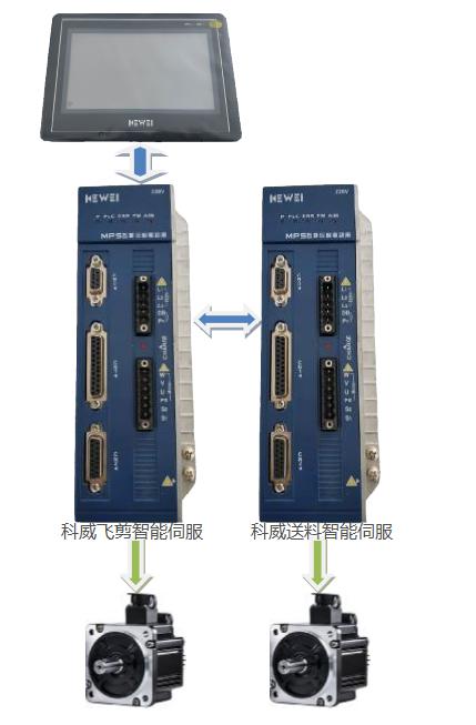 科威智能伺服集伺服驱动、PLC控制、运动控制于一体,正好适用于调直切断机系统。科威智能伺服调直切断机系统方案为触摸屏、飞剪智能伺服、送料智能伺服。