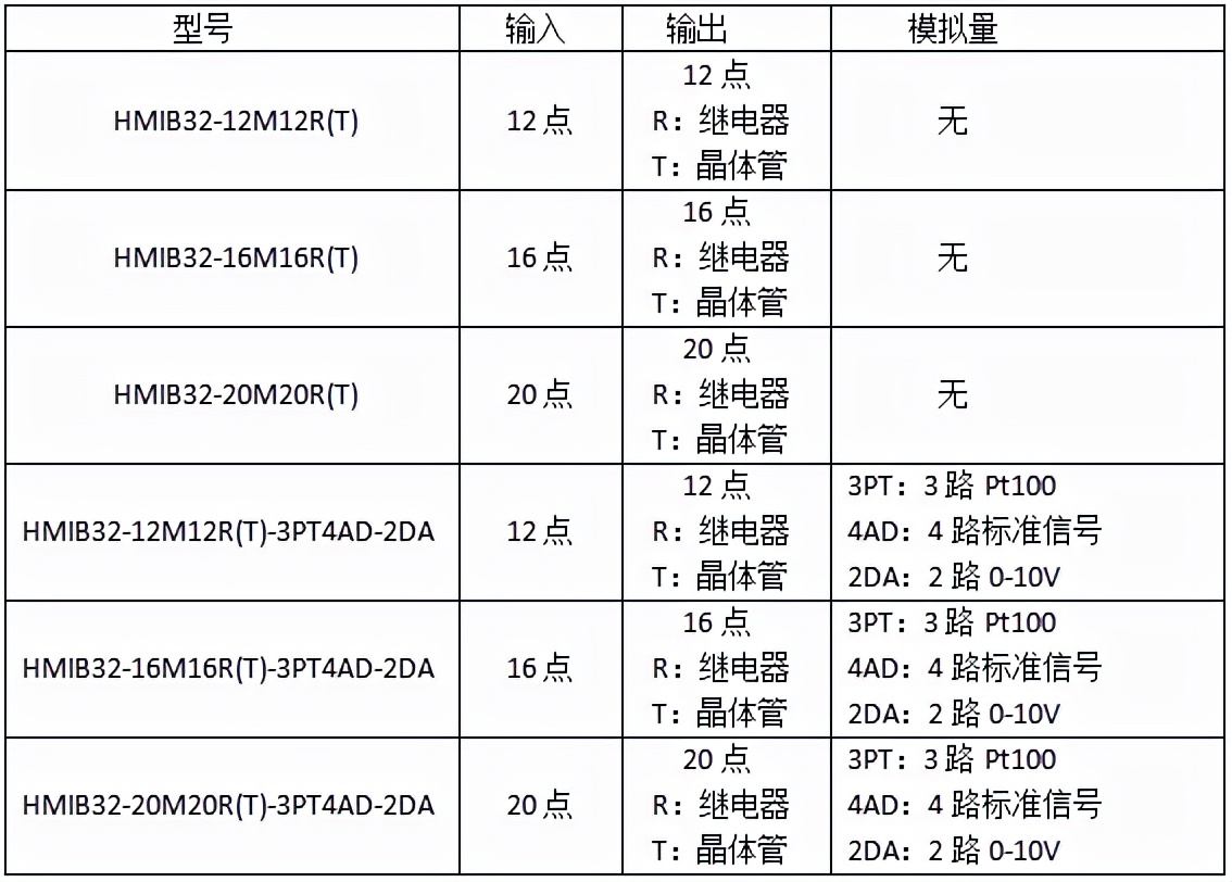附:7寸HMIB32系列触摸屏PLC一体机选型表